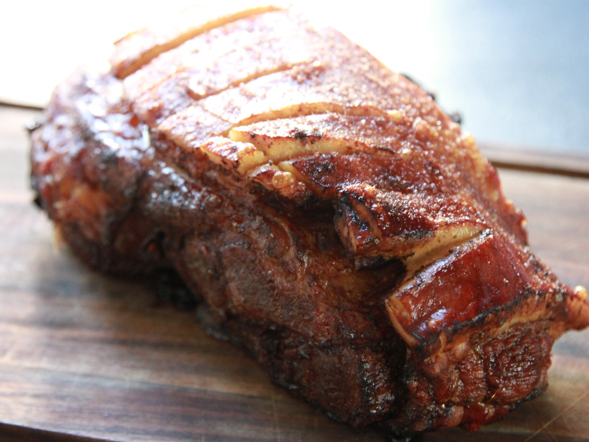 Pop in the 200c (fan) oven for 30mins, this should get the rind fat beginning to brown and blister.