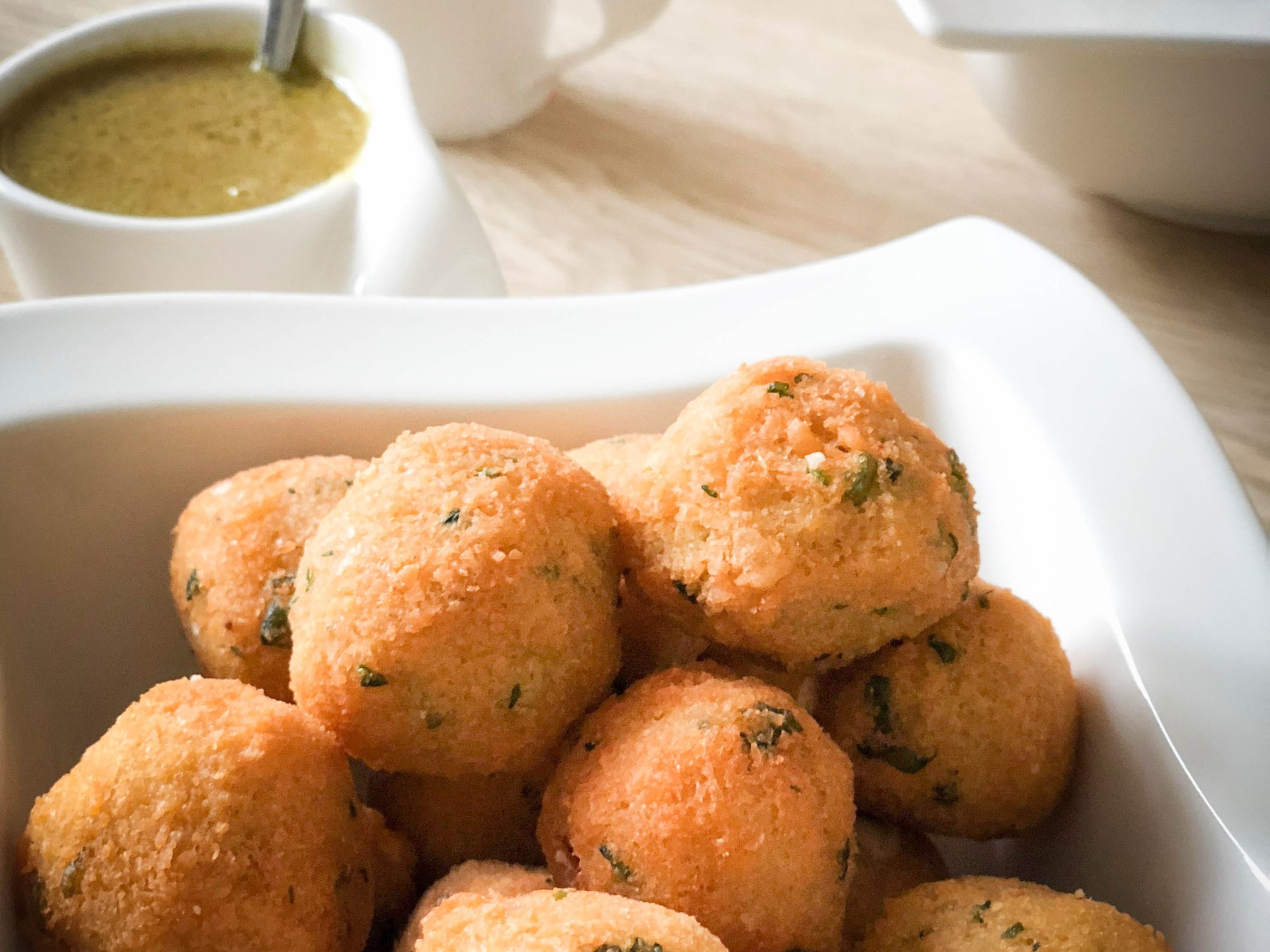 Form the mixture into small balls and place on a tray ready for frying. You can chill the balls in the fridge until you are ready to fry and any remaining mixture freezes well in an airtight freezer bag as well.