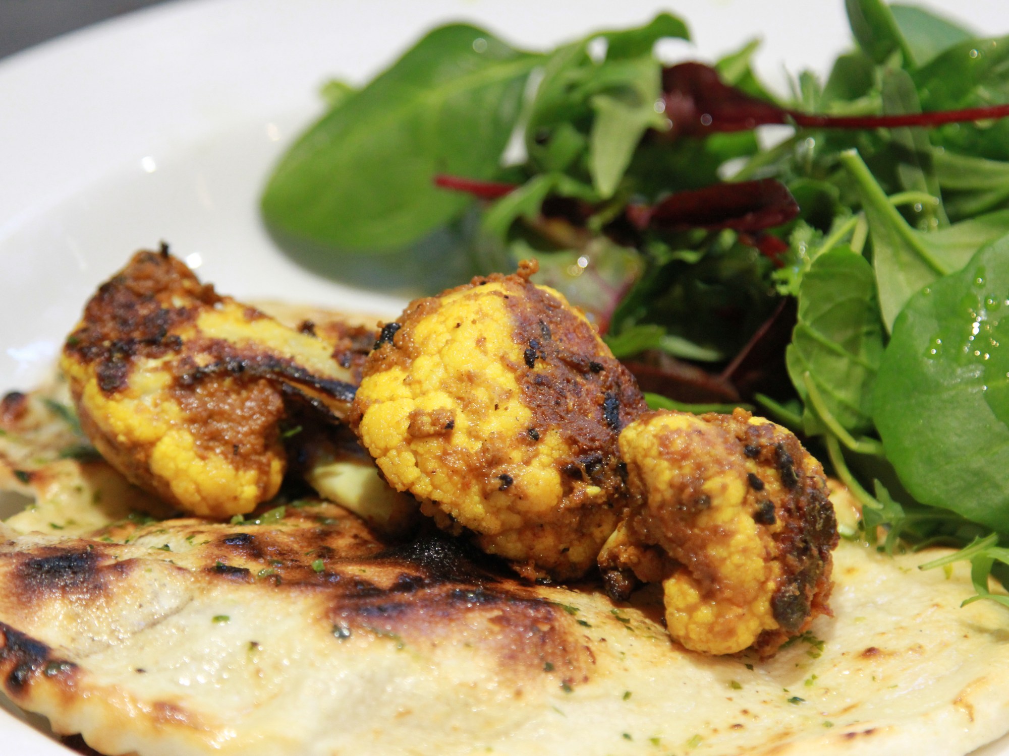 When they florets are tender and have some nice dark charring, remove them. Serve with some fresh nann, greek yogurt and salad.
